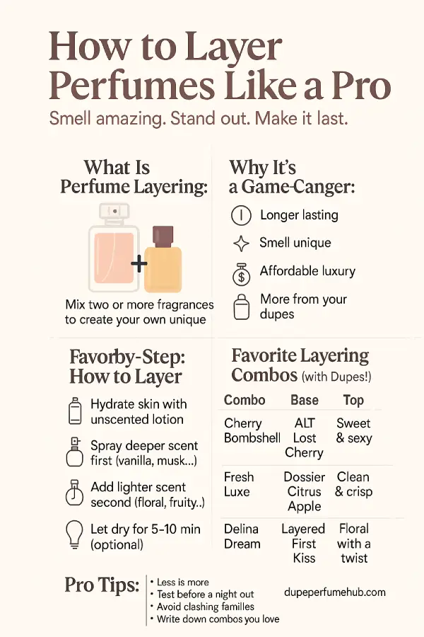 Layer perfumes like a pro and create a scent that lasts, turns heads, and makes your dupes feel like $200 designer fragrances.